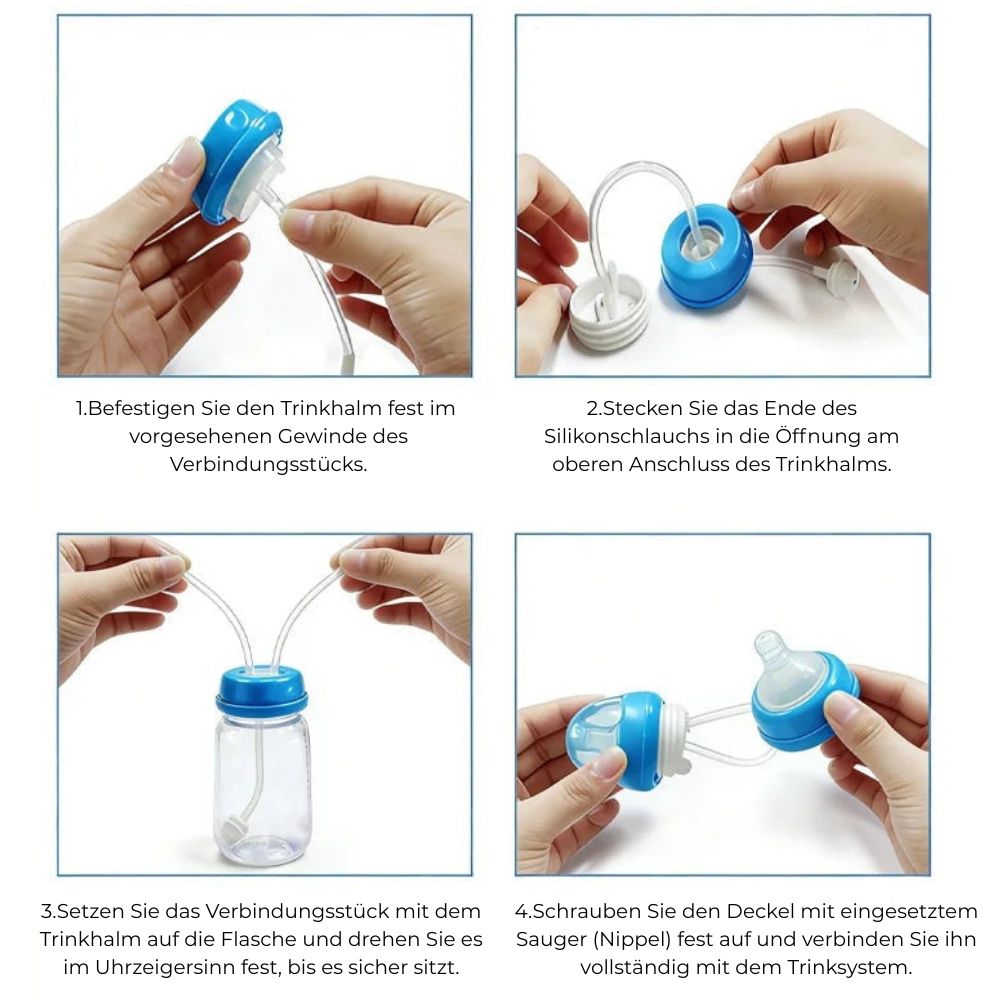 Die EasyFlow Baby™ wurde entwickelt, um deinem Baby ein natürliches, entspanntes Trinkerlebnis zu ermöglichen. Dank des innovativen Schlauchsystems kann dein Baby ganz bequem trinken – egal ob liegend oder sitzend – ohne Stress, ohne Unterbrechung.