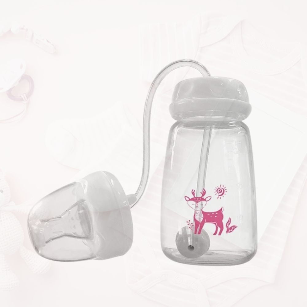 Der flexible Schlauch passt sich jeder Bewegung an und sorgt dafür, dass die Milch immer gleichmäßig fließt – egal ob dein Baby sitzt, liegt oder spielt.